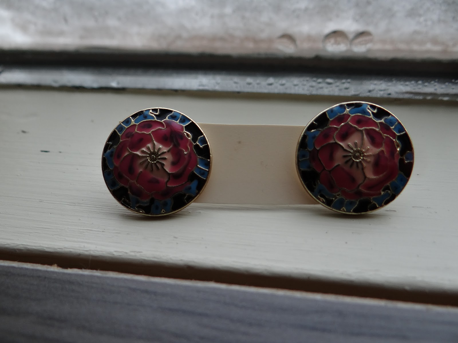 Als eerste deze rondjes, met een roze bloem in het midden en blauwe en zwarte details aan de rand. Lekker vrolijk, past bij veel en ik vind ze gewoon super schattig! Ik knip trouwens het 'kaartje' waar de knopjes op zitten zo klein mogelijk, dat ik handiger om ze op te bewaren!
